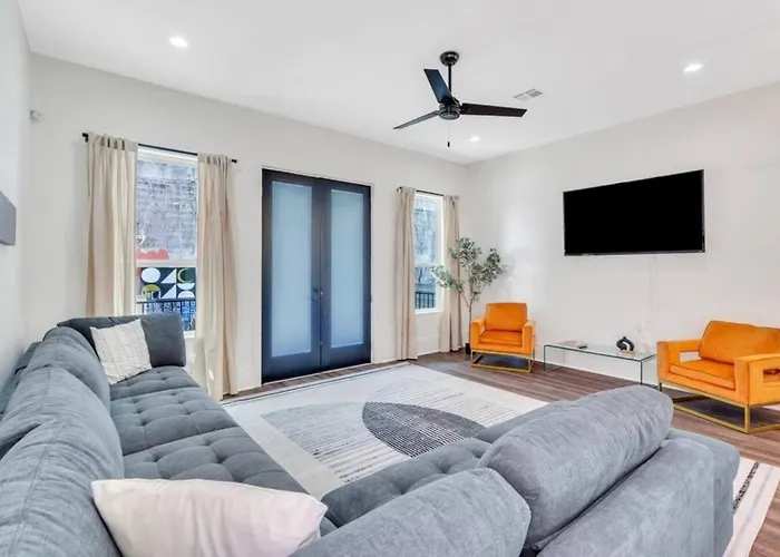 The 4-bedroom Modern Mid-City Maison offers quick access to such city attractions as Sidebar, located a mere 6 minutes' walk away.